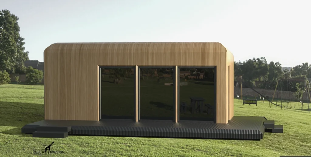 Inspiracja do stworzenia tego nowoczesnego kontenera mieszkalnego wywodzi się z pragnienia połączenia natury z minimalizmem. Postawiłam na prostą, lecz elegancką bryłę, która harmonizuje z otaczającym krajobrazem. Gładkie linie i zaokrąglone krawędzie nadają obiektowi przyjazny charakter, jednocześnie czyniąc go estetycznie uniwersalnym.